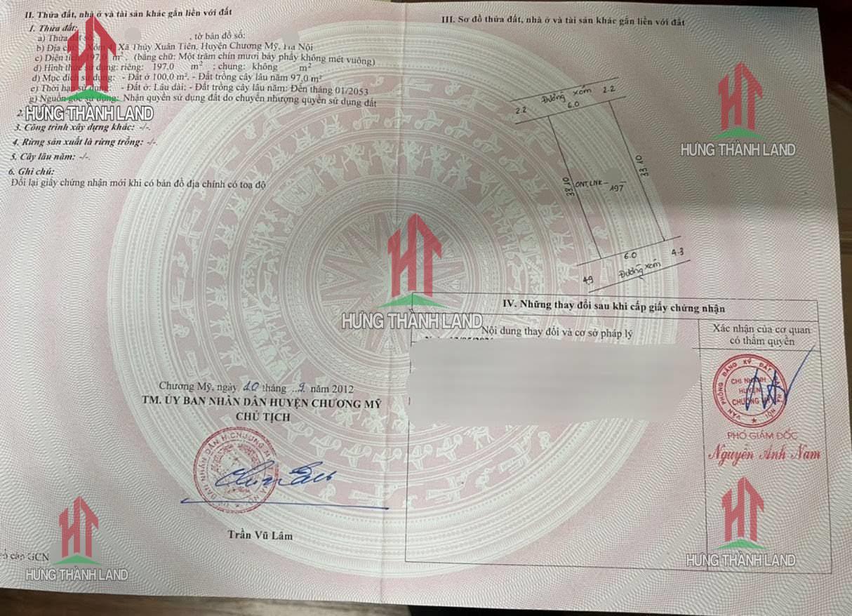 -Diện tích : 197m, có 100 thổ cư