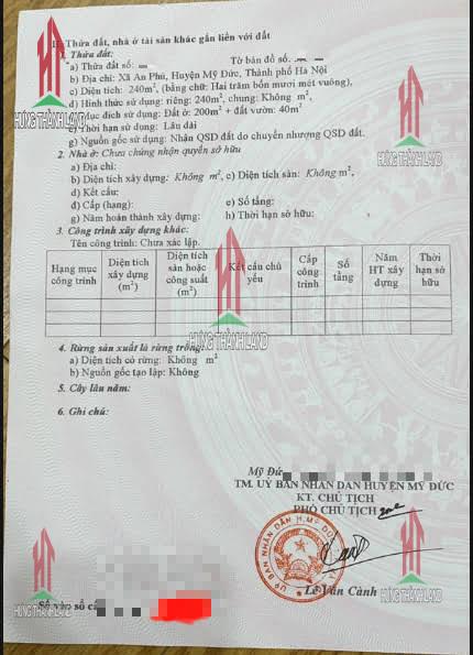 -Diện tích : 240m2 , có 200m đất ở