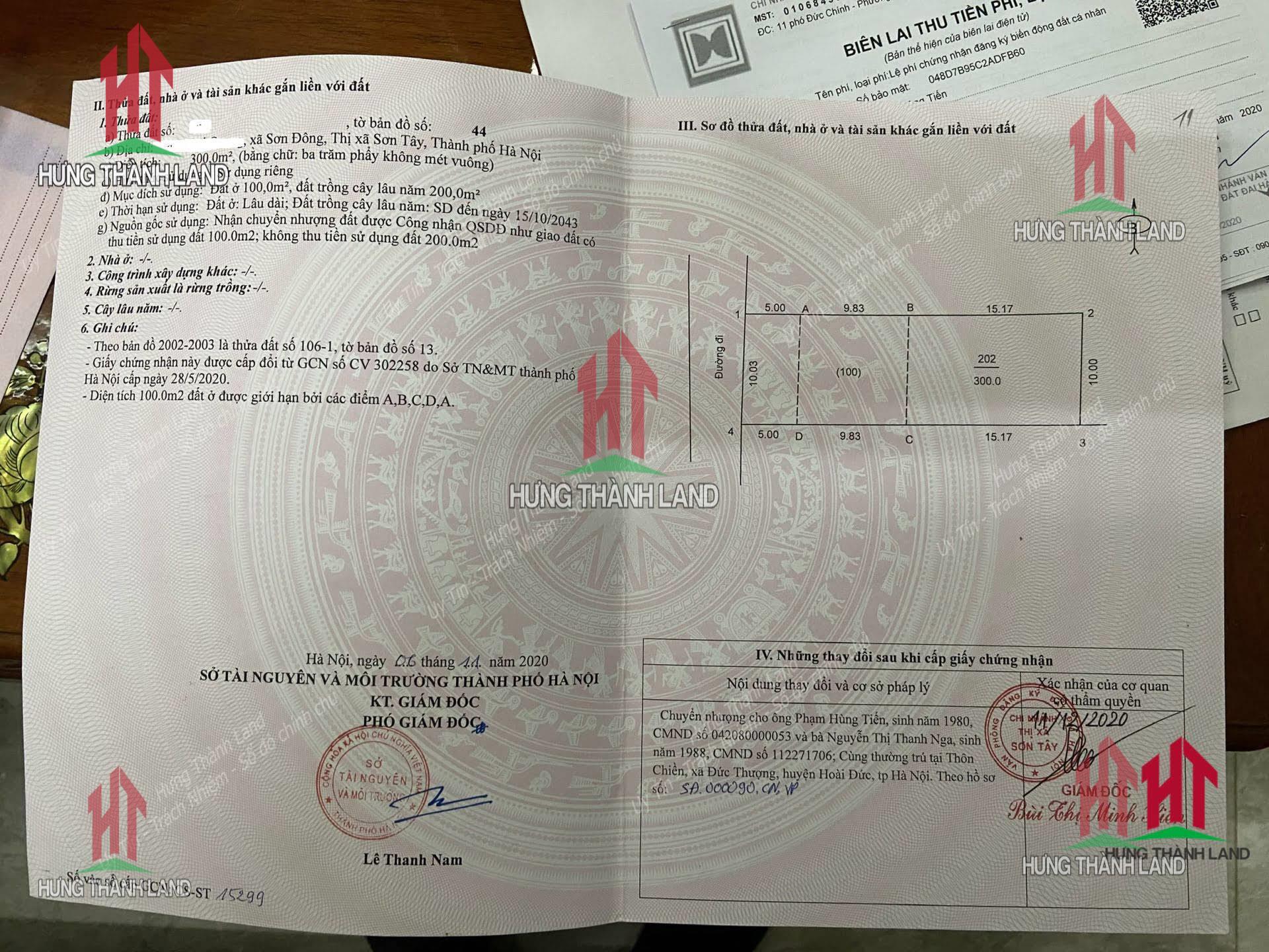 - Diện tích: 300m2 (Có 100m2 thổ cư – Mặt tiền 10m)