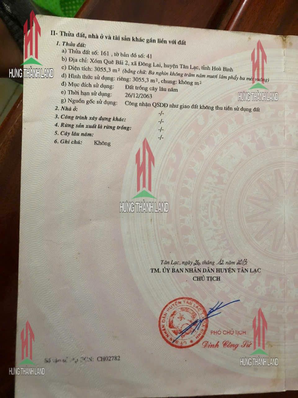 Bán Lô Đất 3311.5m tại Tân Lạc Bám Đường Bê Tông Ô Tô Vào Tận Đất Dân CƯ Đông Đúc Thân Thiện Phù Hợp Làm Nghỉ Dưỡng Giá Đầu Tư