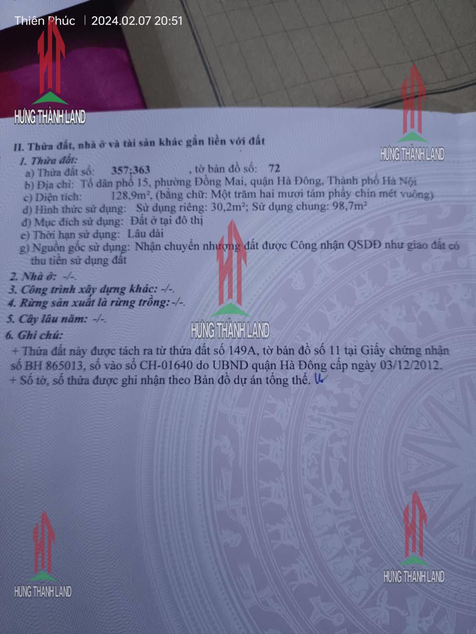 Thông số thửa đất :