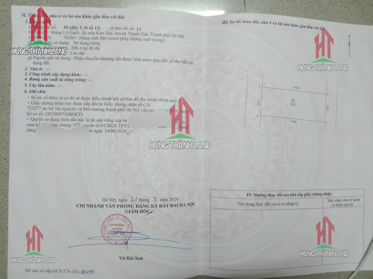 Bán Đất Full Thổ Cư 70m Tại Kim Bài Ô Tô Đỗ Tận Đất Sát Trục Chính Kinh Doanh Gần QL21B