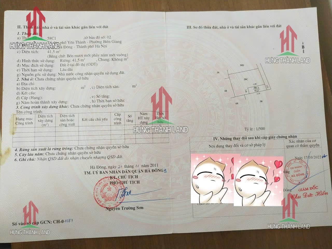 Bất động sản Hưng Thành Land bán thửa đất 41,5m ở Biên Giang _ Hà Đông _ Hà Nội