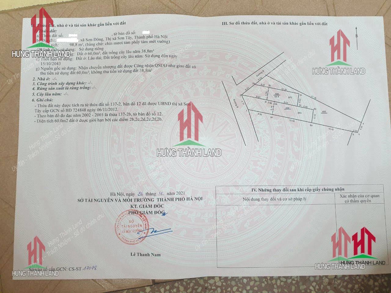 Diện tích: 98,8m2 ( có 60m2 là thổ cư còn lại là đất vườn)