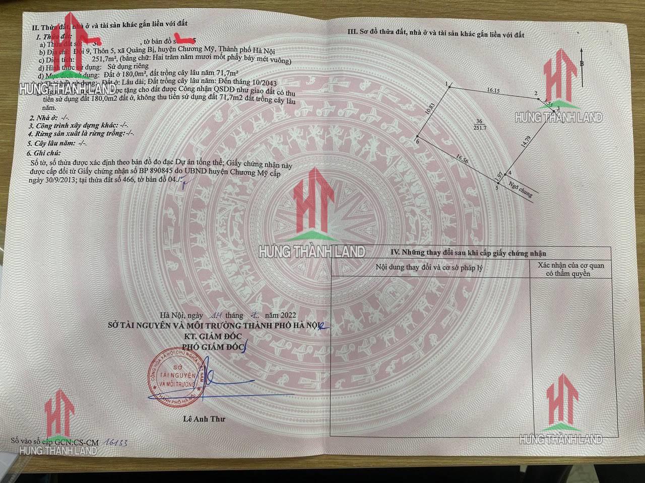 -Diện tích : 251,7m2 có 180m thổ cư