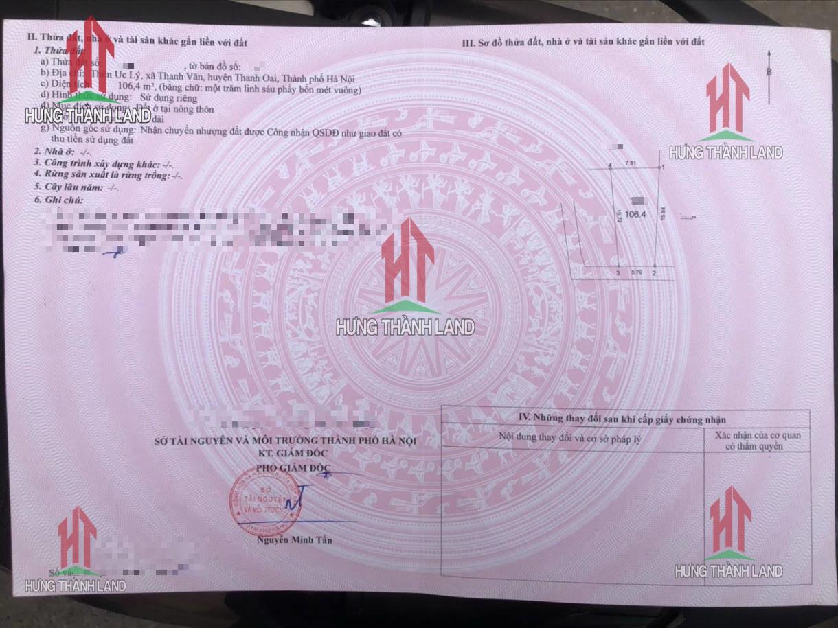 Chính chủ gửi bán lô đất full thổ cư ngay trung tâm xã Thanh Văn - Thanh Oai