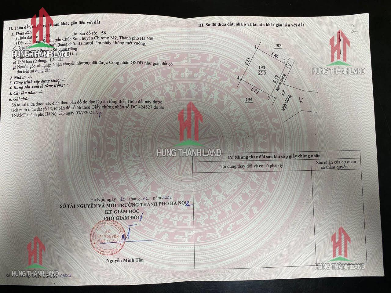 -Diện tích : 35m² . Đường rộng oto vào tận đất