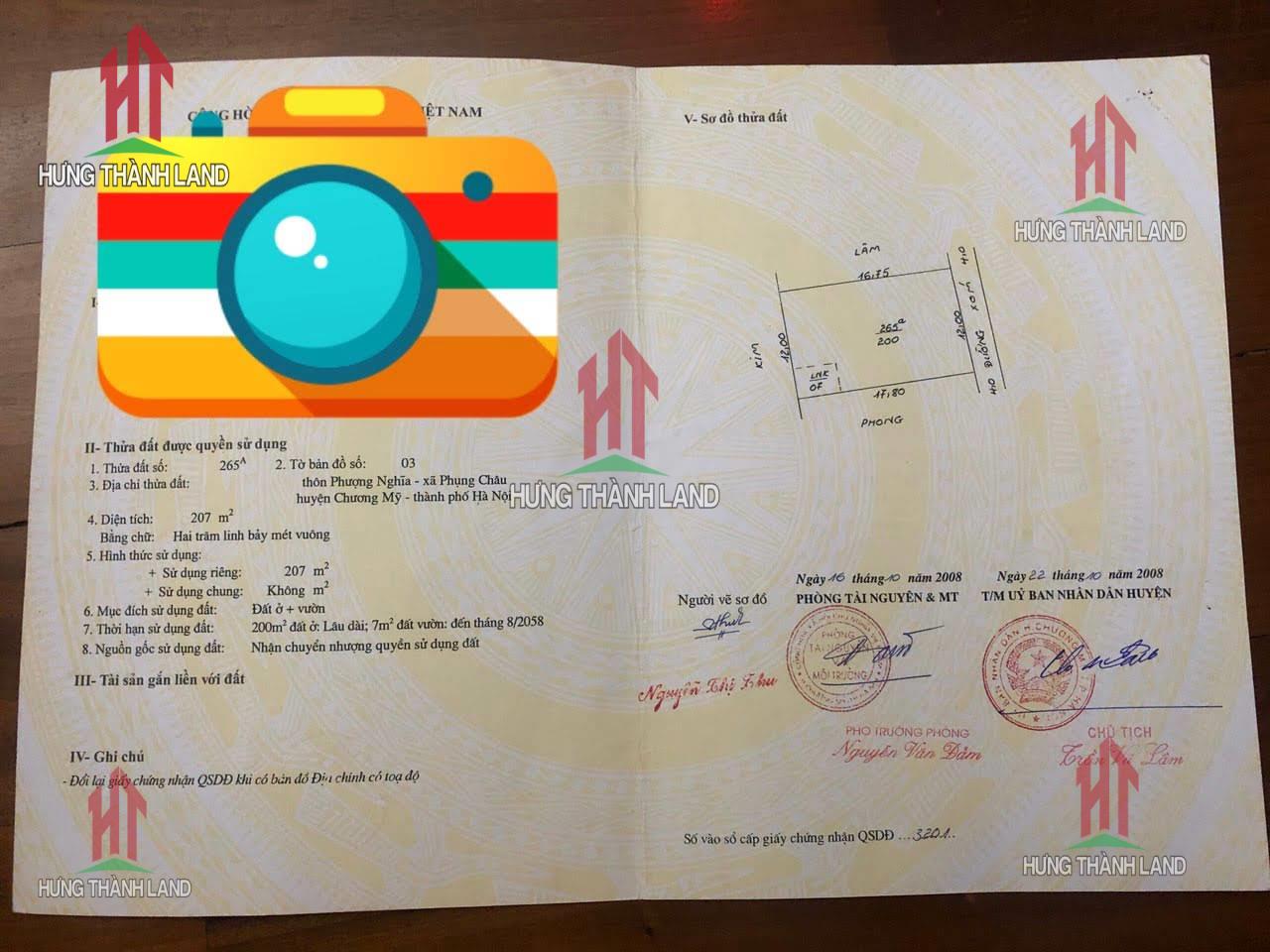 -Diện tích : 207m2 , 200m thổ cư