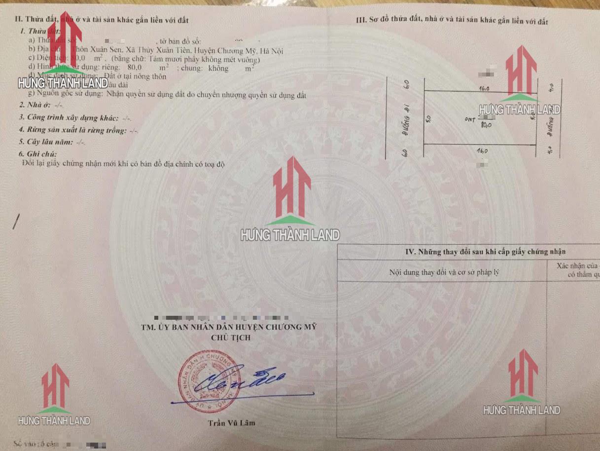 Chính chủ gửi bán lô đất 2 mặt tiền full thổ cư tại Thủy Xuân Tiên - Chương Mỹ
