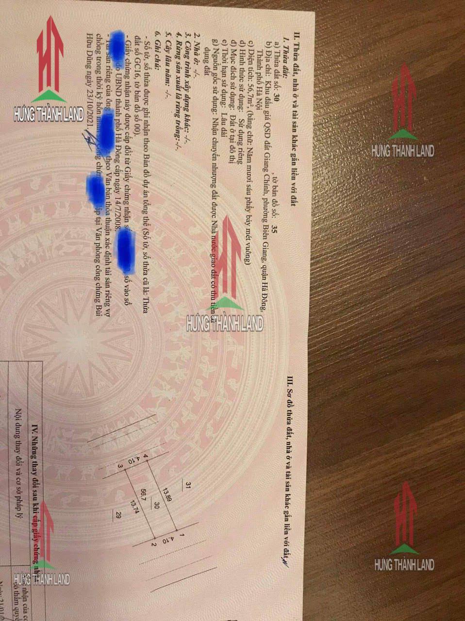 Bất động sản Hưng Thành Land bán lô đất 56,7m tại quận Hà Đông _ HN