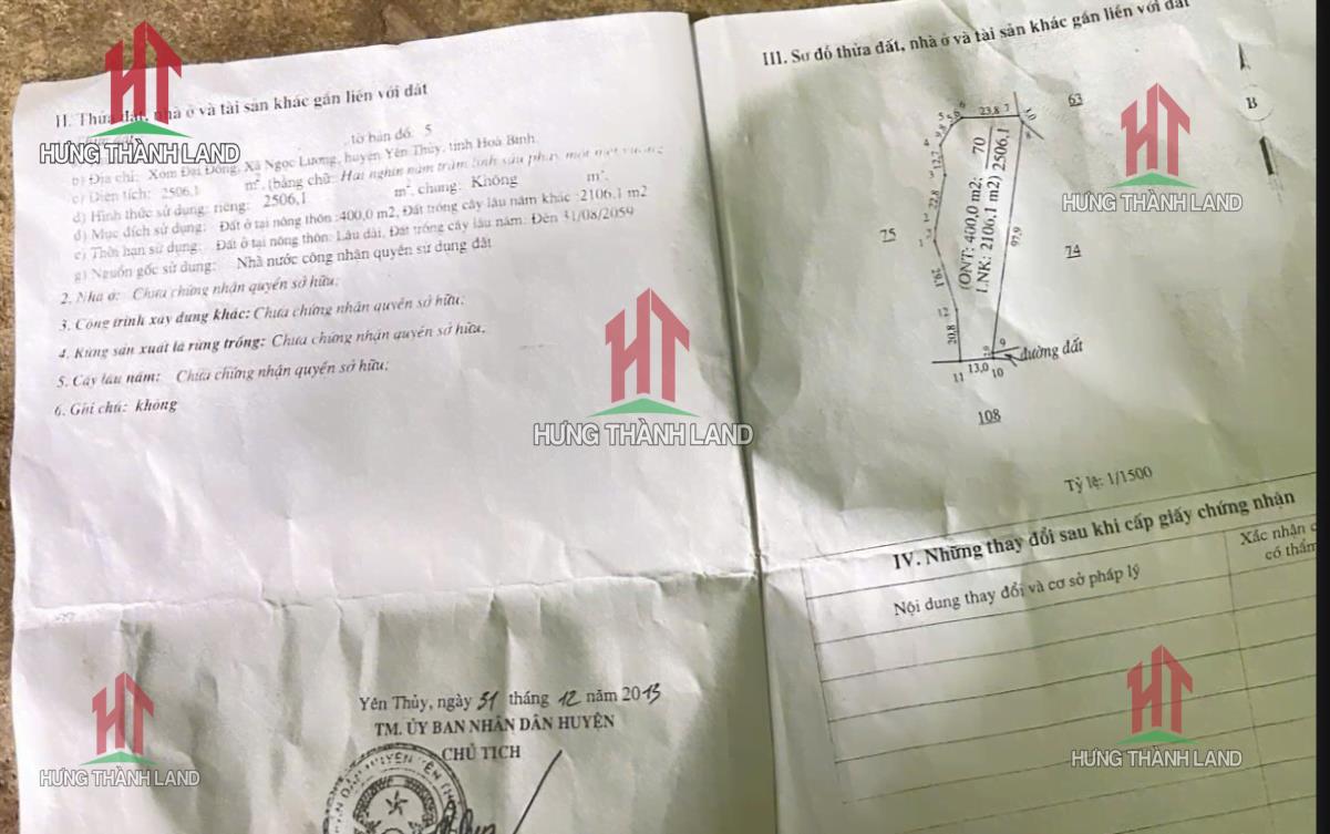 Bán Lô Đất 2506.1m Tại Ngọc Lương Yên Thủy Bám Đường Bê Tông Ô Tô Vào Tận Đất Dân Cư Đông Đúc Sẵn Nhà Cấp 4 Giá Đầu Tư