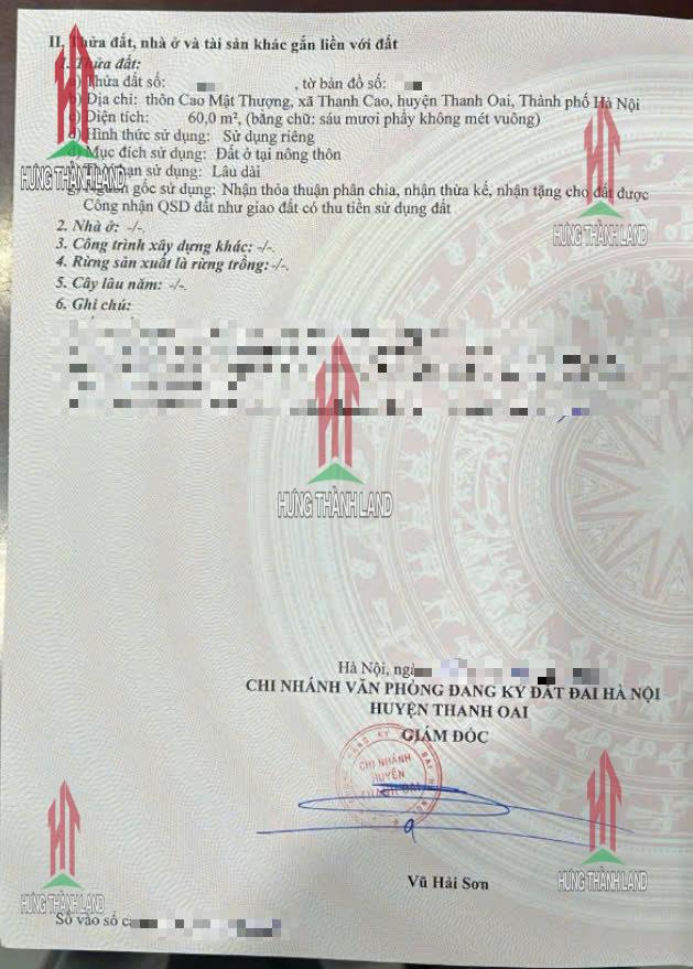 Bán Lô Đất Full Thổ Cư 60M2 Ngay Trung Tâm Xã Thanh Cao Gần Trục Chính Liên Xã
