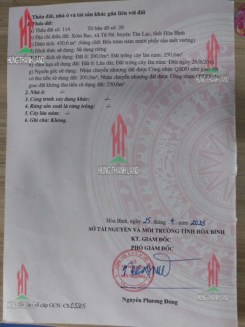 Bán Lô Đất 332.6m Tại Tử Nê Tân Lạc Bám Đường Bê Tông Ô Tô Vào Tận Đất Cách Ql12b 300m Dân Cư Đông Đúc Giá Đầu Tư