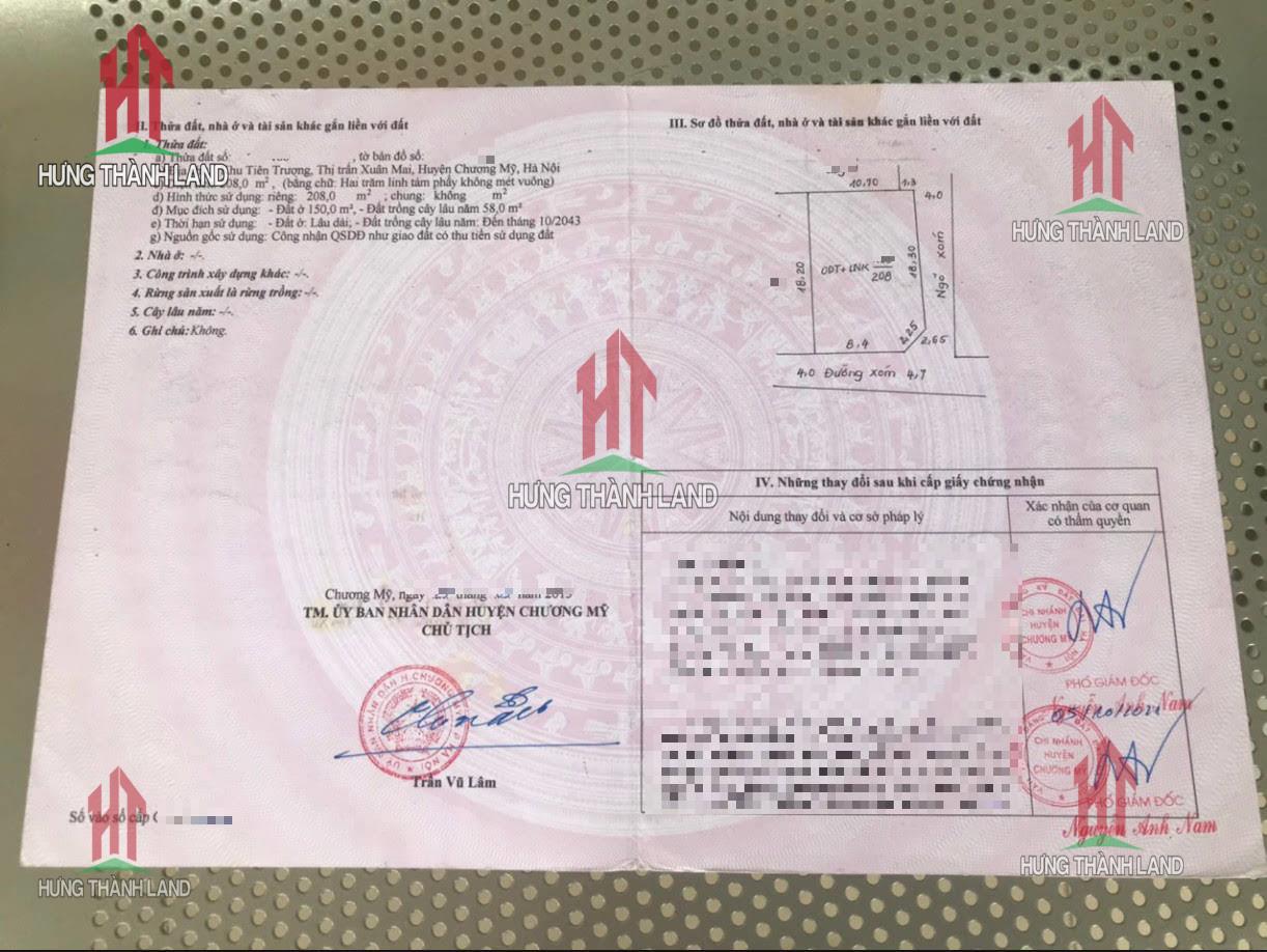 -Diện tích : 208m2 , có 150m đất ở