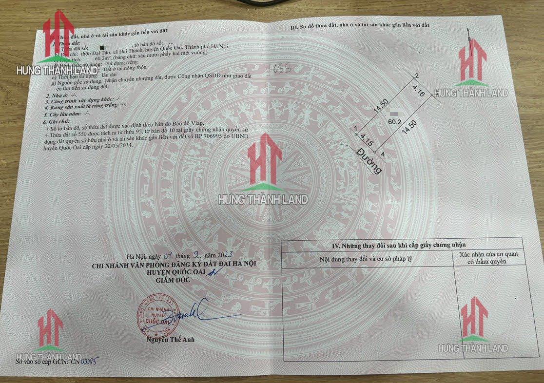Bất Động Sản Hưng Thành Land bán nhà ở thương maj tại Đại Thành - Quốc Oai - Hà Nội