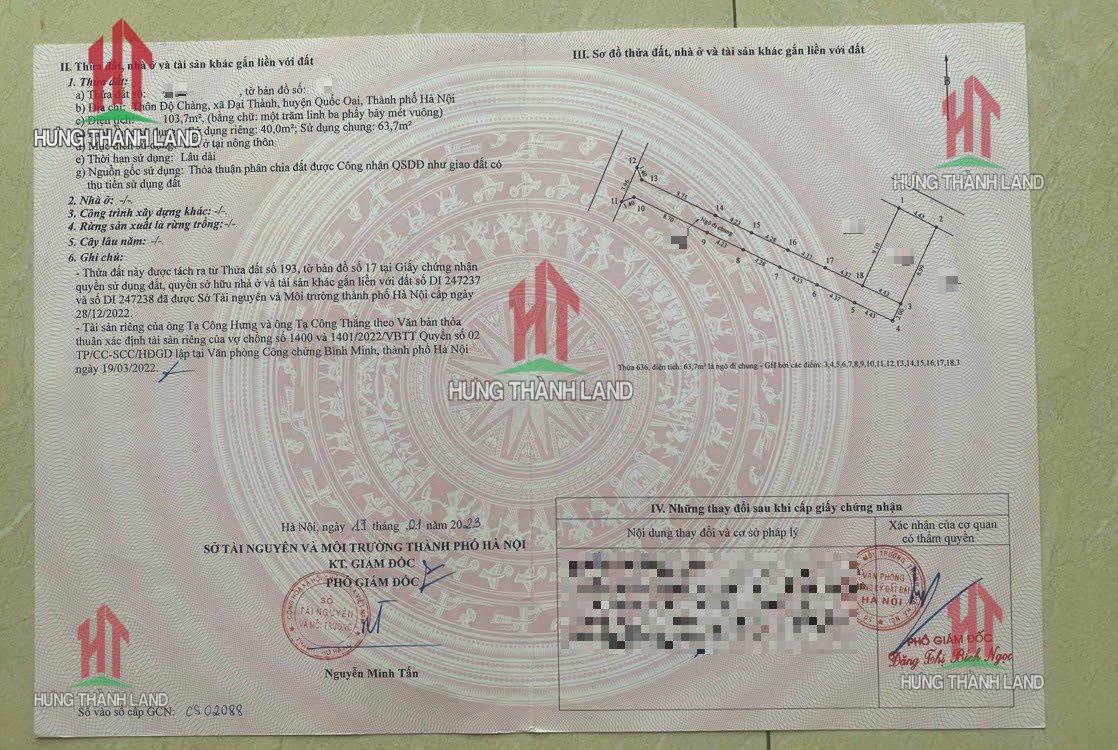 Bất Động Sản Hưng Thành Land bán nhà ở thương mại tại Đại Thành - Quốc Oai - Hà Nội
