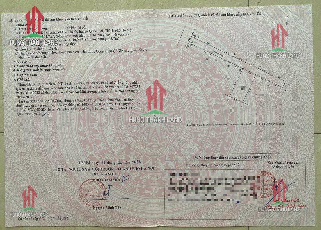 Bất Động Sản Hưng Thành Land bán nhà ở thương mại tại Đại Thành - Quốc Oai - Hà Nội