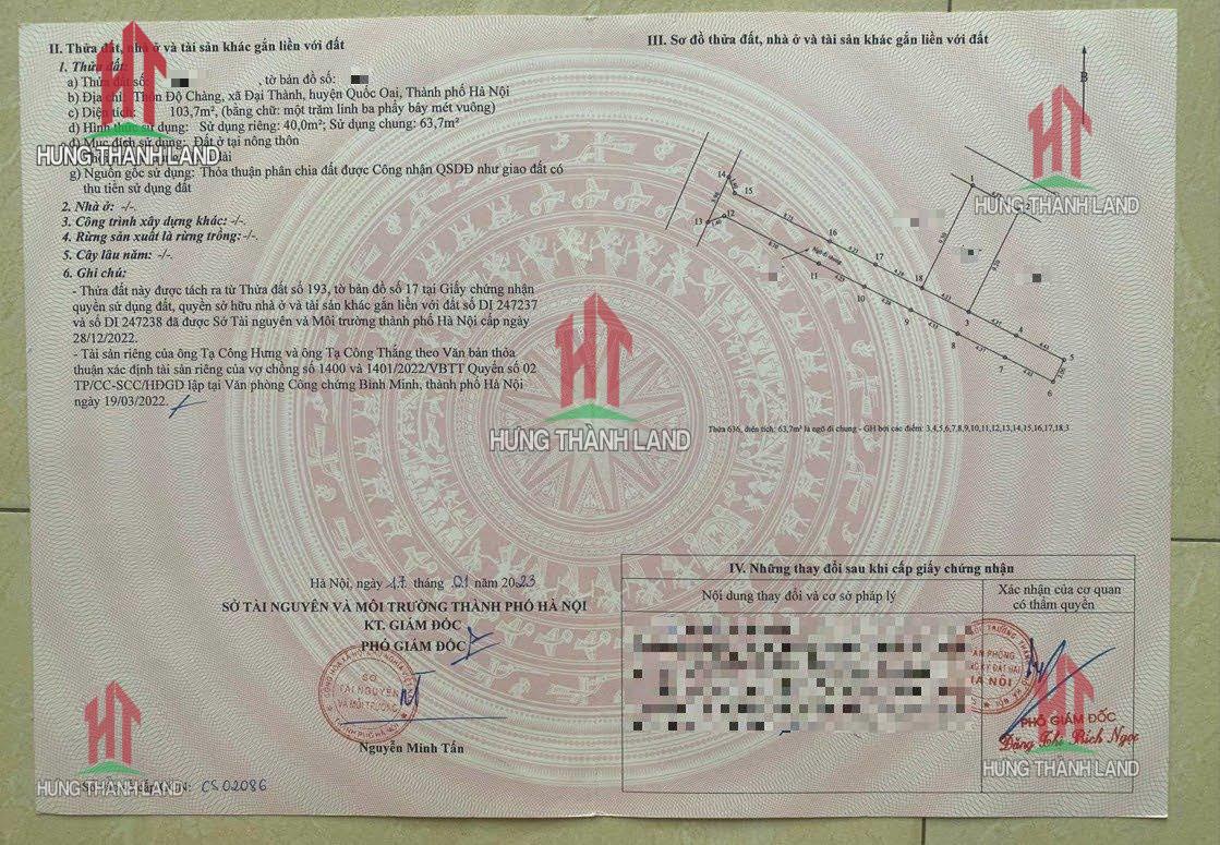 Bất Động Sản Hưng Thành Land bán nhà ở thương mại tại Đại Thành - Quốc Oai - Hà Nội