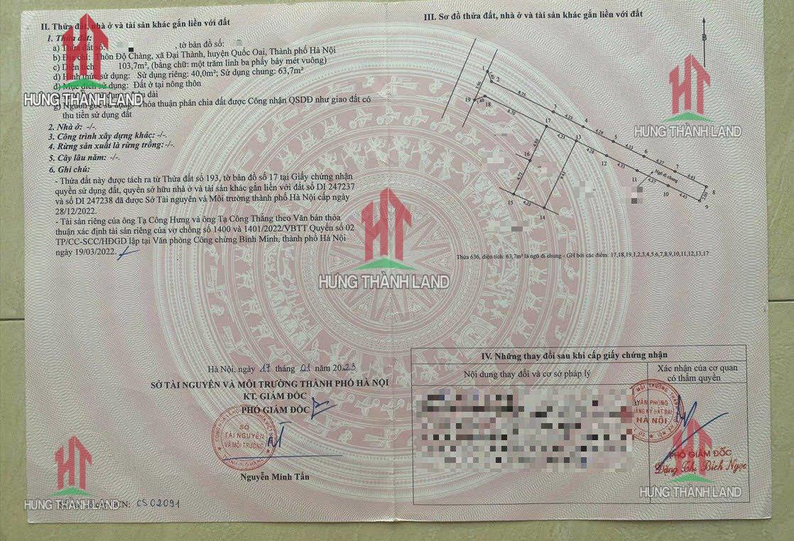 Bất Động Sản Hưng Thành Land bán nhà ở thương mại tại Đại Thành - Quốc Oai - Hà Nội