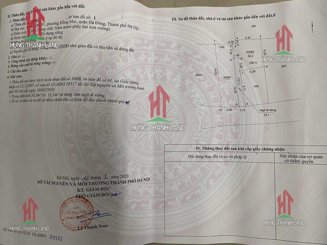Bất Động Sản Hưng Thành bán lô đất thuộc Tổ 1 - Đồng Mai. Quận Hà Đông - Hà Nội