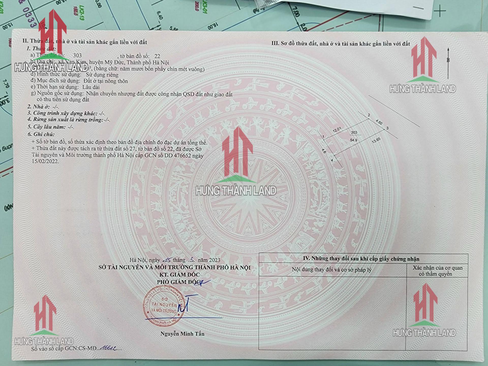 Bất Động Sản Hưng Thành bán lô đất ở Vạn Kim - Mỹ Đức - Hà Nội