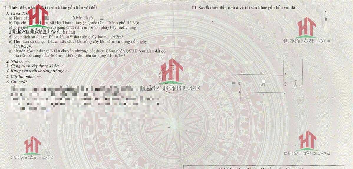 Gia đình cần bán thửa đất dân để xây nhà 146m2 ở Hòa Thạch Quốc Oai
